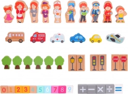 • 10 lesenih figur, 6 dreves in 6 vozil.