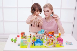 Leseniški set Lesene kocke Postavi mesto 120 kosov