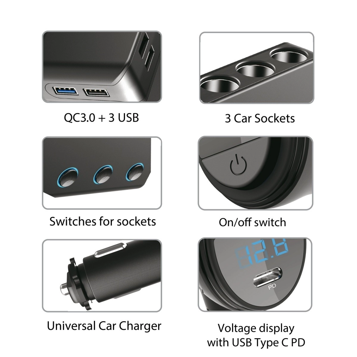 Ta razdelilni adapter je idealen za vse, ki morajo med vožnjo z avtomobilom hkrati polniti več naprav. Podpira ultra hitro polnjenje s standardoma Qualcomm Quick Charge 3.0 in Power Delivery 18W USB‑C, kar je idealno za sodobne pametne telefone, kot so iPhone 8/8 Plus/X.
