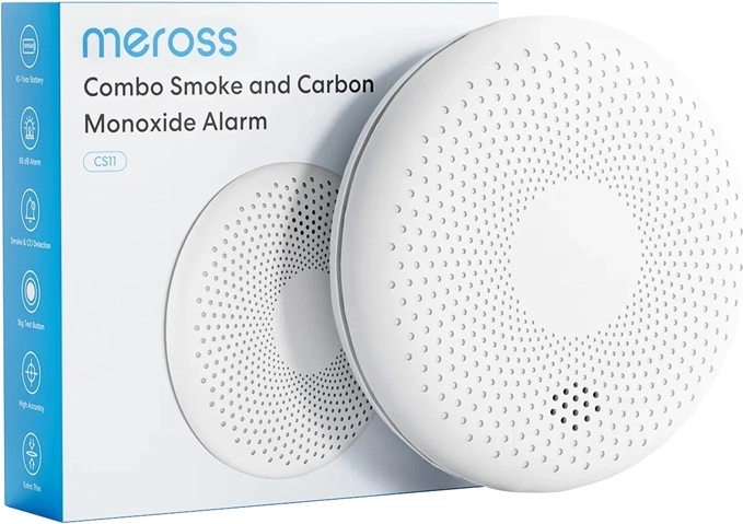 Detektor Meross združuje fotoelektrične in elektrokemične senzorje za natančno zaznavanje dima in ogljikovega monoksida. V skladu s standardi EN14604 in EN50291 ponuja hiter odziv že pri koncentraciji 300 ppm v manj kot 3 minutah ter močan 85 dB alarm.