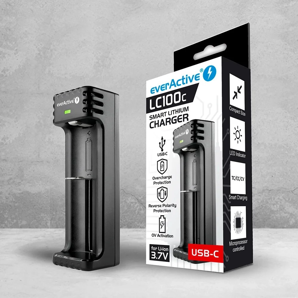 Polnilnik EverActive LC100C je idealna rešitev za učinkovito in hitro polnjenje enega akumulatorja. Uporablja sodobno tehnologijo z mikroprocesorjem, kar povečuje zanesljivost in varnost procesa polnjenja.