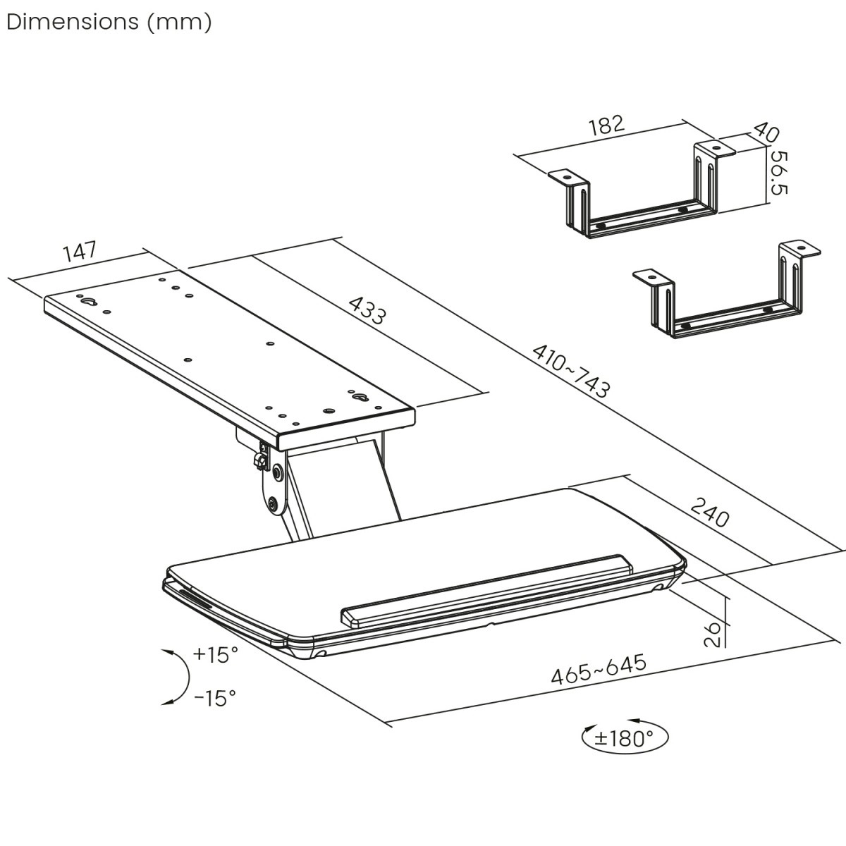 Nastavljiv kot tipkovnice do 15 stopinj omogoča popolno prilagoditev delovnega kota individualnim potrebam uporabnika, s čimer zmanjšuje napetost v zapestjih in podlahteh.