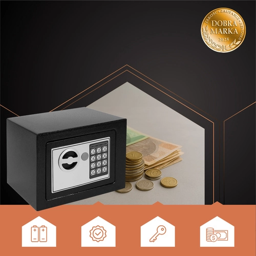 Za višjo varnost je sef opremljen z zvočno in svetlobno signalizacijo ter samodejno blokado po treh napačnih poskusih. Napajanje zagotavljajo široko dostopne baterije AA, namestitev je preprosta, v paketu pa prejmete tudi montažni pribor.