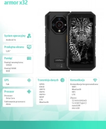 Zmogljivost baterije 5500 mAh zagotavlja do 30 ur pogovora ali 300 ur v stanju pripravljenosti in podpira hitro 18W polnjenje preko USB-C. Ulefone Armor X32 je opremljen z visokokakovostnimi kamerami za natančno fotografiranje, vključno z 48 Mpx glavno kamero, 20 Mpx nočno kamero in 2 Mpx makro objektivom.