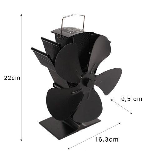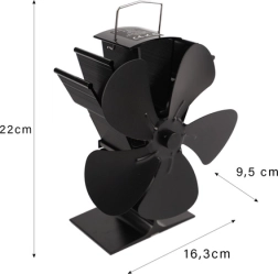 Kaminski ventilator Kaminer je idealna izbira za vse, ki želijo učinkovito izkoristiti toploto iz kamina. Zahvaljujoč svoji termoelektrični funkcionalnosti deluje brez napajanja, kar pomeni neodvisnost med izpadi elektrike. Pet lopatic zagotavlja hitro in enakomerno kroženje zraka po prostoru. S toplotno aktivacijo pri zgolj 60°C se ventilator samodejno vklopi in razporeja toploto takoj po zakuritvi ognja.