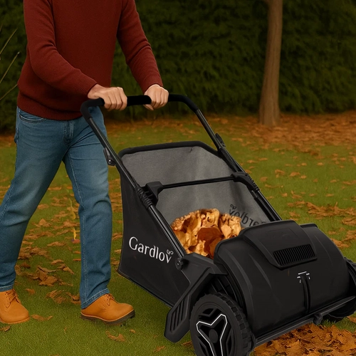 Ročni pometalnik GARDLOV je zanesljiva in okolju prijazna rešitev za hitro čiščenje vrta brez kablov, baterij in goriva. Tih način delovanja in mehanizem brez vzdrževanja ga naredita idealno orodje za vsakodnevno uporabo skozi celotno sezono. Vrtljiva ščetka učinkovito zbira listje in pokošeno travo neposredno v veliko košaro s prostornino 100 l.