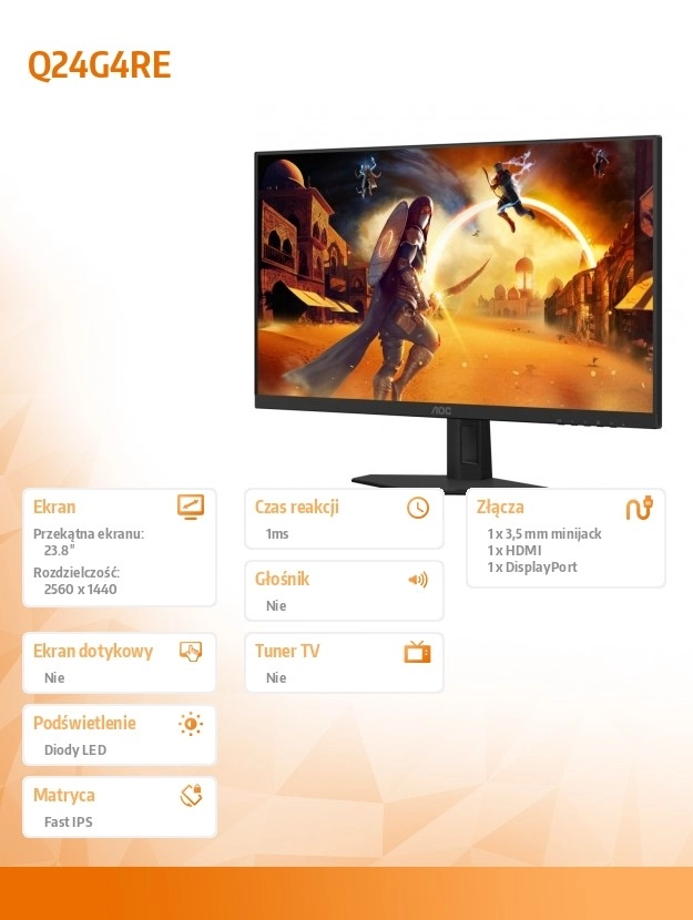 Uživajte v gladkem igranju in ostri sliki z 23,8" monitorjem s panelom Fast IPS in frekvenco do 180 Hz. Zahvaljujoč hitremu odzivnemu času, širokim vidnim kotom ter priključkoma HDMI in DisplayPort je idealen za igralce in zahtevno delo.