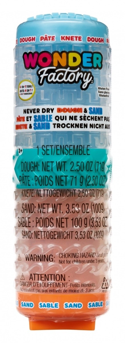 Uživajte v dolgotrajnem ustvarjanju zahvaljujoč edinstveni formuli Wonder Factory – gladko testo in oblikovalni pesek ohranjata svoje lastnosti tudi po večkratni uporabi.