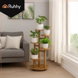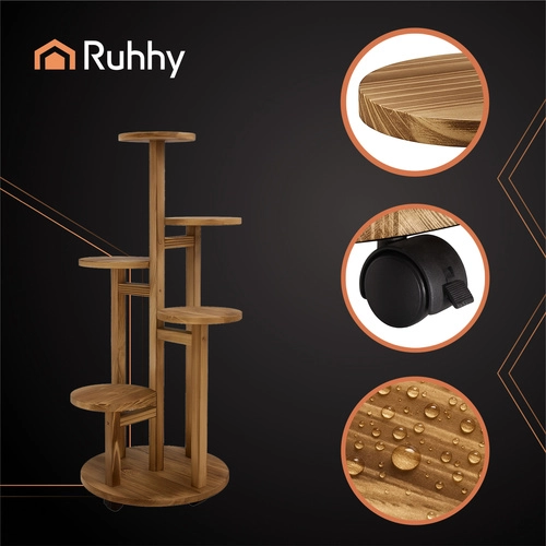 Vnesite red in zelenje v notranjost z lahkotno, mobilno in praktično konstrukcijo stojala RUHHY. Vrtljiva kolesa z blokado omogočajo gladko premikanje brez prask na tleh, medtem ko 6 nivojev nudi prostor za različno velike lonce v eni harmonični kompoziciji. Naravni borov les je estetski, enostaven za čiščenje in odporen na vlago – odličen za notranjo in zunanjo uporabo.