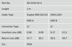 LC konektorji s keramičnimi ferulami zagotavljajo stabilen spoj z nizkim dušenjem. LSOH plašč minimalizira dimljenje in ne vsebuje halogenov, kar je primerno za notranje instalacije z poudarkom na varnosti. Kabel je dobavljen posamično pakiran z merilnim protokolom za zagotovitev skladnosti in kakovosti.
