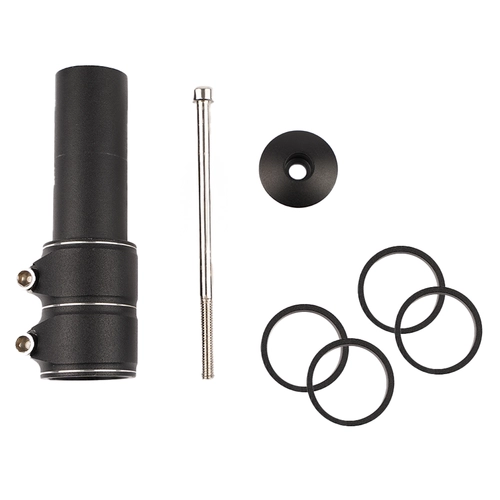 Montaža je hitra in ne zahteva zamenjave komponent – adapter se namesti med okvir (krmilni ležaj) in nosilec. Komplet vsebuje štiri dist. obročke za modularno nastavitev višine ter imbus ključ. Zaradi kompatibilnosti z dimenzijo 28,6 mm je primeren za večino mestnih, treking, MTB in cross koles.
