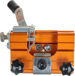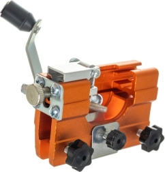 Namestitev poteka neposredno na meč – brez demontaže verige. Robustno vpenjanje in ergonomska ročica zmanjšujeta vibracije in tveganje zdrsa. Odporna konstrukcija iz anodiziranega aluminija z jeklenim pritrdilnim materialom je pripravljena na zahtevno uporabo v delavnici in v gozdu.