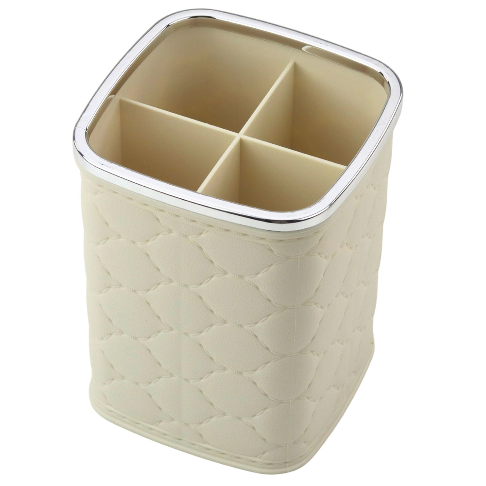Ohranite red na toaletni mizici in v profesionalnem salonu. Organizator za čopiče s štirimi ločenimi predelki omogoča pregledno shranjevanje čopičev za ličenje, svinčnikov, maskar, eyelinerjev in šmink, da imate vse vedno pri roki.