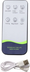 Upravljanje je zelo preprosto – na ohišju so intuitivni gumbi, na voljo pa je tudi praktičen daljinski upravljalnik. Izberite neprekinjen ali prekinjen način megle, nastavite časovnik in barvo svetlobe glede na razpoloženje. Funkcija samodejnega izklopa ob praznem rezervoarju varuje napravo in povečuje varnost.