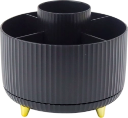 Ohranite red v kozmetiki s kompaktnih organizatorjem, ki se gladko vrti za 360° in omogoča hipen dostop do vseh shranjenih stvari. Odprta zasnova ne omejuje višine, zato lahko udobno pospravite tudi daljše čopiče in svinčnike. Minimalističen videz v črni barvi je primeren tako za dom kot za profesionalni salon.