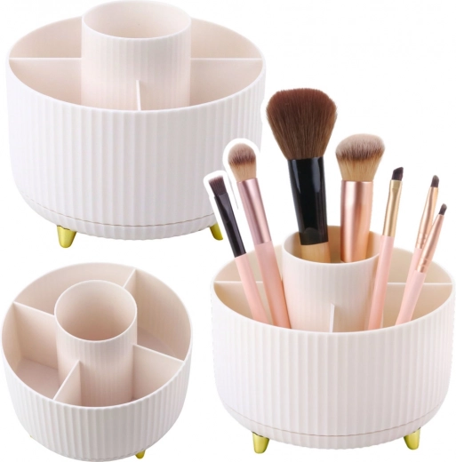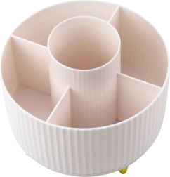 Stilski in praktičen kozmetični organizer z vrtljivo osnovo 360° vam pomaga ohraniti popoln red. Ponuja 5 prostorne predelke za čopiče, šminke, svinčnike in druge pripomočke. Izdelan iz odpornega ABS, ima stabilno konstrukcijo in odprt dizajn za lahek dostop tudi do daljših čopičev.