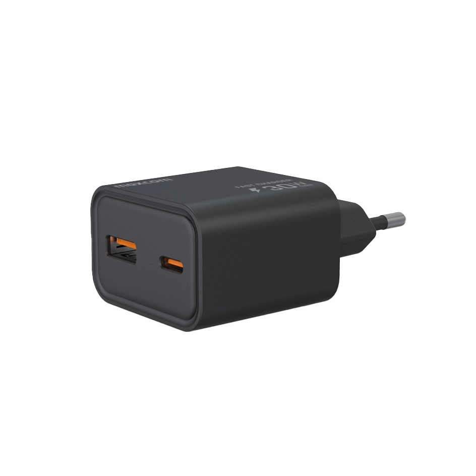 Ta univerzalni polnilnik z evropskim vtikačem združuje vrata USB‑C in USB‑A, zato zlahka napolnite telefon, tablico, slušalke in drugo elektroniko. Zahvaljujoč moči do 30 W podpira hitro polnjenje združljivih naprav in skrajša čas pri vtičnici.