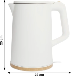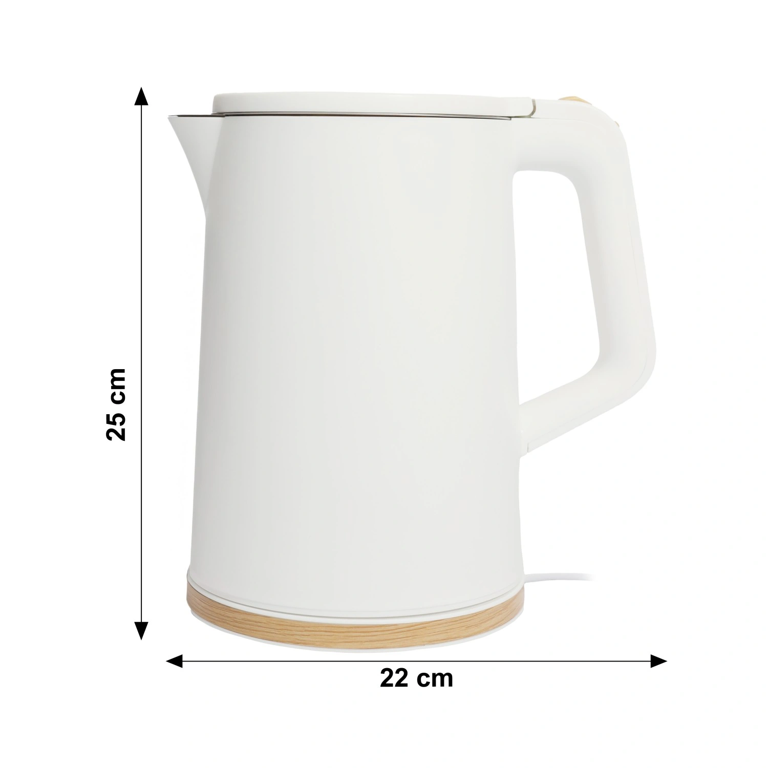 Uživajte v hitrem in varnem segrevanju vode, kjer koli ste. Ta potovalni grelnik vode združuje moč 1500 W s praktično prostornino 1,7 l, zato pripravi čaj ali kavo za vso družino v nekaj minutah. Sodoben bel dizajn se odlično poda v vsak interier, dvojna stena pa ohranja zunanjo površino prijetno hladno.