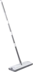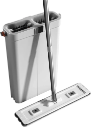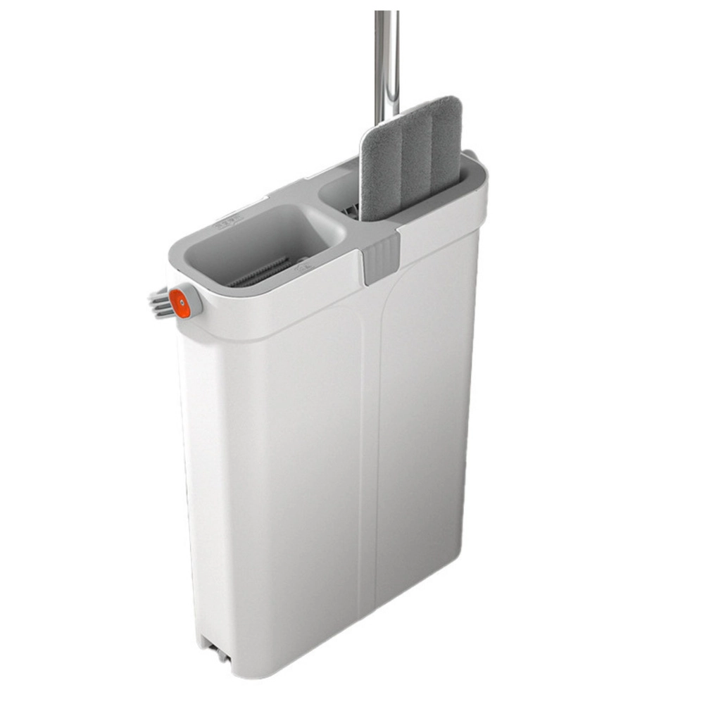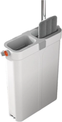 Sodobno dvokomorno vedro ločuje čisto in umazano vodo za bolj higiensko in hitrejše čiščenje. Ploščati mop z nastavljivo teleskopsko palico se zlahka prilagodi višini uporabnika in doseže ozke prostore, pod postelje ali omare.