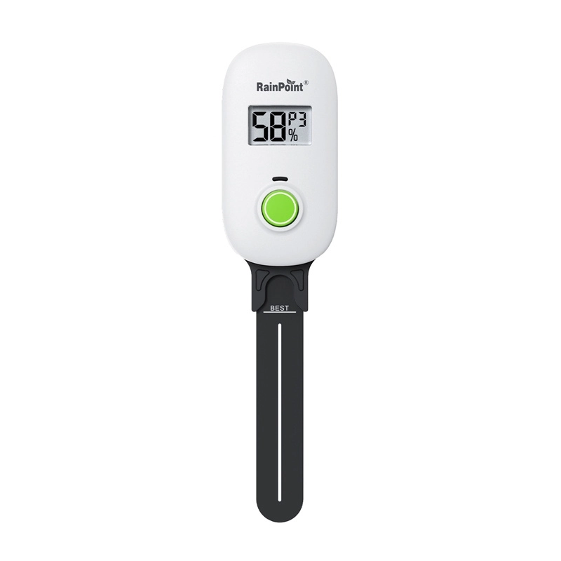 Vodotesno in proti koroziji odporno ohišje omogoča, da senzor stalno ostane v loncih, koritih in gredicah. Vgrajena LED vas opozori, ko vlažnost pade pod približno 15 %, v kombinaciji z združljivimi namakalniki RainPoint pa preprosto ustvarite samodejne namakalne načrte.