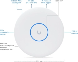 V svoje omrežje vnesite najnovejši standard Wi‑Fi 7 z dostopno točko U7 Pro XGS. Naprava združuje visoko kapaciteto, nizko latenco in stabilno pokritost zahvaljujoč 8 prostorskim tokom ter inteligentnemu upravljanju radijskega okolja s namenskim spektralnim skeniranjem. Idealna za pisarne, šole, trgovine in sodobna gospodinjstva z visoko gostoto odjemalcev.