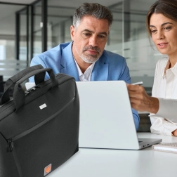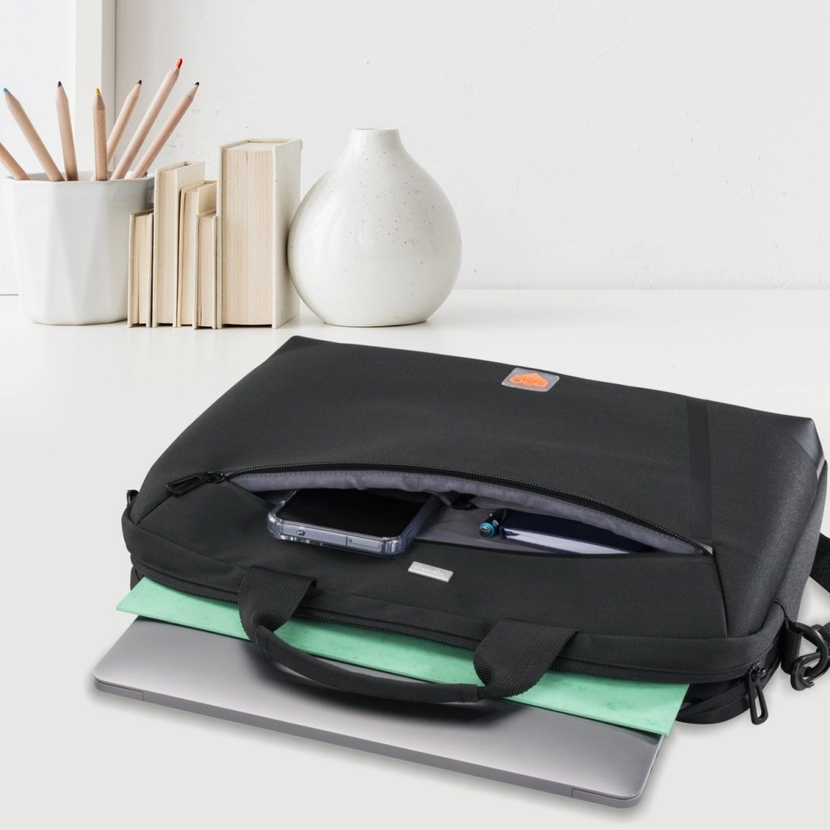 Elegantna in trpežna torba za prenosnik z napredno zaščito D3O za naprave do 16,2". Ponuja vodoodbojen in na umazanijo odporen površinski sloj, praktičen organizator za dodatke, odstranljiv ramenski trak ter možnost pritrditev na kovček za udobno potovanje.