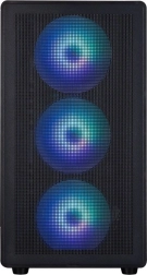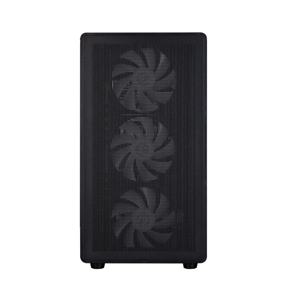 Elegantno in funkcionalno ohišje M5 Black v formatu mATX Mini Tower združuje odličen pretok zraka z učinkovito ARGB osvetlitvijo. Zahvaljujoč štirim 120‑mm ARGB ventilatorjem (3× spredaj, 1× zadaj) ter podpori radiatorja do 360 mm na vrhu ohranja stabilne temperature tudi pri zmogljivih sestavah.