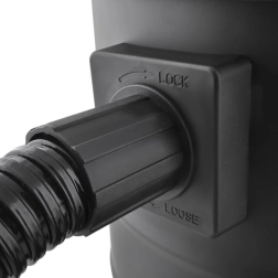 Za večjo vsestranskost je sesalnik opremljen s funkcijo pihanja – dovolj je, da cev priključite na zgornji izpust, in lahko odpihujete listje, prah in večje nečistoče s poti ali iz garaže. Kovinska notranja ojačitev sesalne cevi ščiti pred poškodbami in mašenjem z drobnimi delci, kar povečuje varnost in življenjsko dobo naprave.