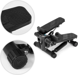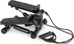 Kompakten stepper z uporovnimi ekspanderji za domačo vadbo omogoča učinkovito krepiti spodnji in zgornji del telesa, izboljšati kondicijo in kuriti kalorije. Robusten okvir iz jekla, ABS in TPE, nedrseče pedala, nastavljiva intenzivnost ter 5-funkcijski LCD zaslon za spremljanje časa, korakov in kalorij. Priloženi sta zaščitna podloga in stabilne nogice za varno vadbo na vsaki podlagi.