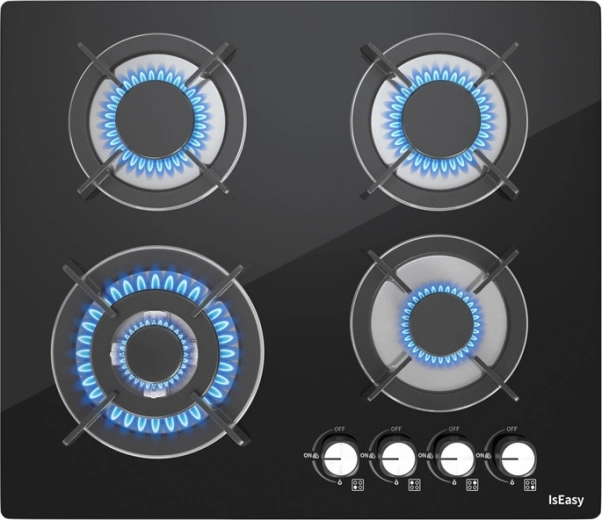 Plinska kuhalna plošča ISEASY s širino 60 cm je odlična izbira za moderno kuhinjo. Zaradi elegantnega črnega stekla in litoželeznih rešetk deluje prestižno, hkrati je odporna na toploto in praske ter enostavna za vzdrževanje. Samodejna prekinitev dovoda plina ob ugasnitvi plamena prinaša večjo varnost za celotno gospodinjstvo.