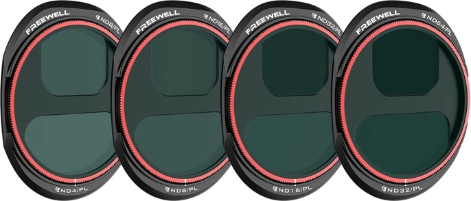 Komplet vsebuje štiri filtre (ND8/PL, ND16/PL, ND32/PL, ND64/PL), ki vam omogočajo prilagoditev prepustnosti svetlobe trenutnim razmeram. Polarizacijska plast učinkovito odpravlja odseve z vode, stekla in listja ter hkrati povečuje kontrast in nasičenost barv, kar je idealno za krajinske posnetke in zahtevne dnevne prizore.