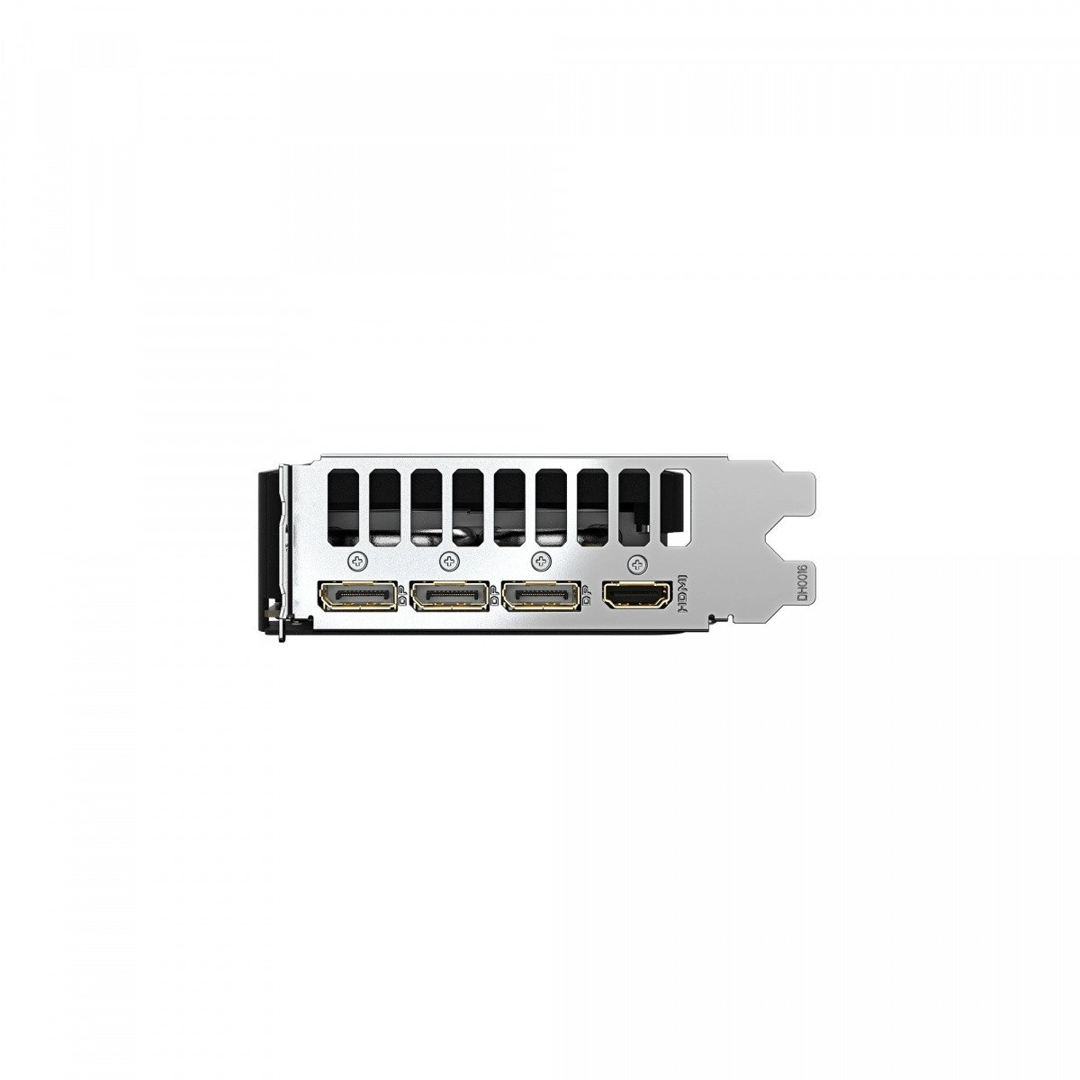 Ukrivljene konture in segmentirane linije poudarjajo futurističen videz. Zadnji kovinski backplate dodatno utrjuje kartico in izboljšuje pasivno hlajenje.