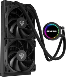GENESIS Hydria 240 je zmogljivo in elegantno AIO vodno hlajenje za gamerje, ustvarjalce in zahtevne uporabnike. Ponuja trifazno črpalko za tiho delovanje, izbirno ARGB osvetlitev z možnostjo izklopa z enim klikom ter široko združljivost z Intel in AMD podnožji. Zahvaljujoč kompaktnemu blok-črpalknemu modulu, fleksibilnim opletenim cevem in enostavni namestitvi s tremi priključki dobite zanesljivo hlajenje z dolgo življenjsko dobo in odličnim videzom.