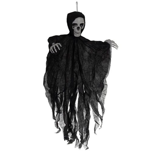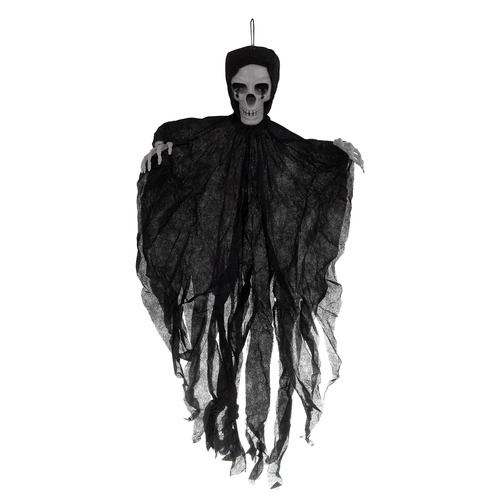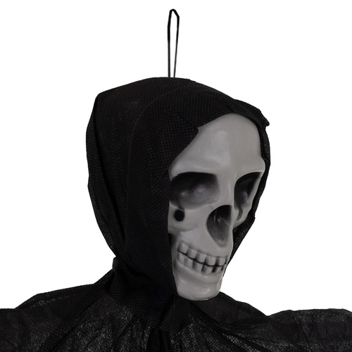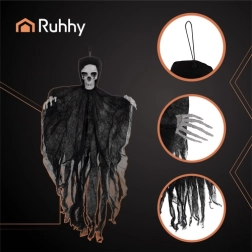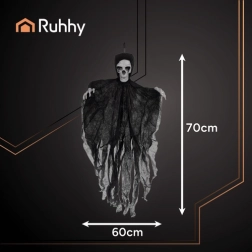 Ustvarite učinkovito halloweensko sceno v trenutku. Viseče okostje RUHHY v črni barvi ponuja realističen videz, majhno težo in enostavno obešanje z zanko. Strgano blago se ob gibanju zraka nežno vali in okrepi strašljiv učinek.