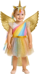 Preobrazite malo princesko v čarobno bitje s tem očarljivim kostumom samoroga. Svetleč til z zlatimi zvezdicami, zlata krila in naglavni obroč z rogom ustvarijo učinek WOW, ki navduši na prvi pogled. Kostum je zasnovan za udobno celodnevno nošenje in je primeren za otroke stare približno 4–6 let.