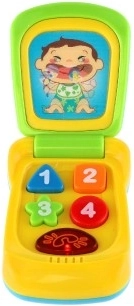Klasičen »preklopni telefon« se otrokom dobro drži v roki in ga zlahka odprejo. Barvne številke na gumbih spodbujajo domišljijsko igro ter urijo fino motoriko in koordinacijo.