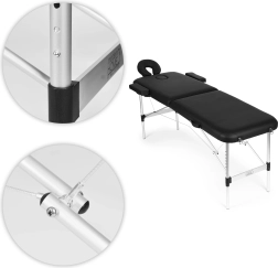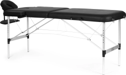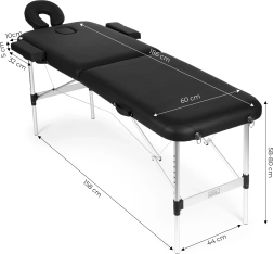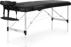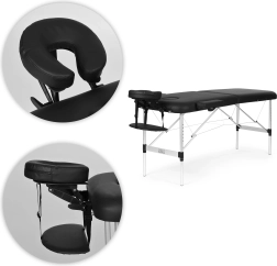 Udobje stranke zagotavljajo nastavljiv naslon za glavo z gladko regulacijo kota in višine, odprtina za obraz s pokrovčkom za udobje pri ležanju na trebuhu ter viseči naslon za podlakti za naravno odlaganje rok. 5 cm debela pena in enostavno čistljivo PVC usnje prinašata higieno in dolgo življenjsko dobo.
