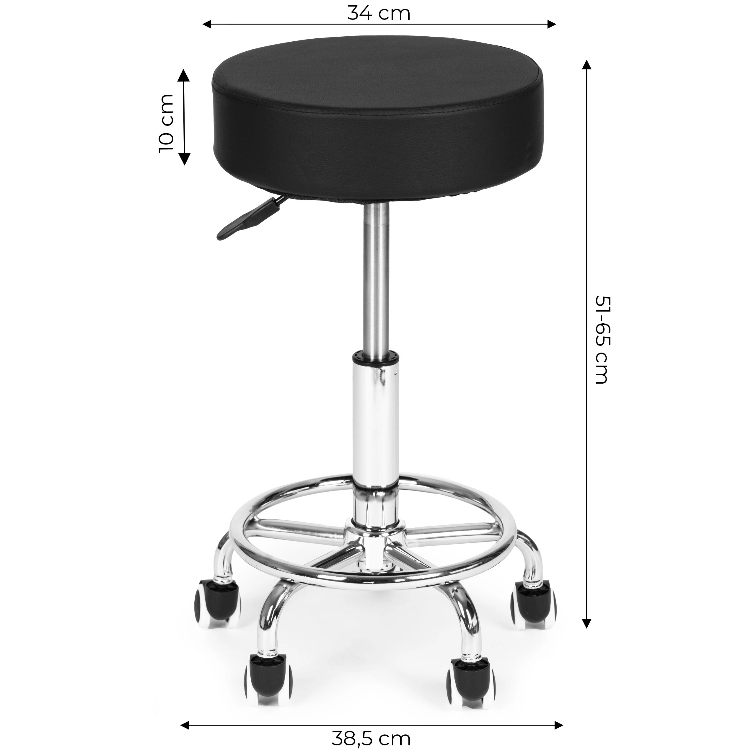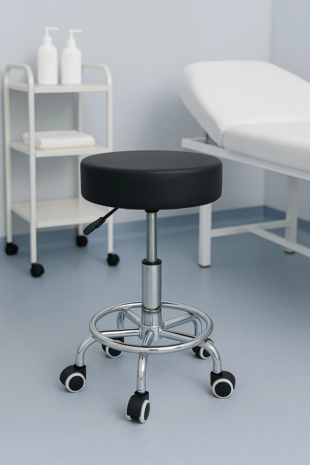 Ergonomsko sedenje za profesionalce – stol odlično služi v kozmetičnih in frizerskih salonih, zdravniških ordinacijah, masažnih salonih in tetovirnih studiih. Gladek pnevmatski bat omogoča hitro prilagoditev višine, medtem ko 360° vrtljiv sedež olajša delo brez nepotrebnega vstajanja.