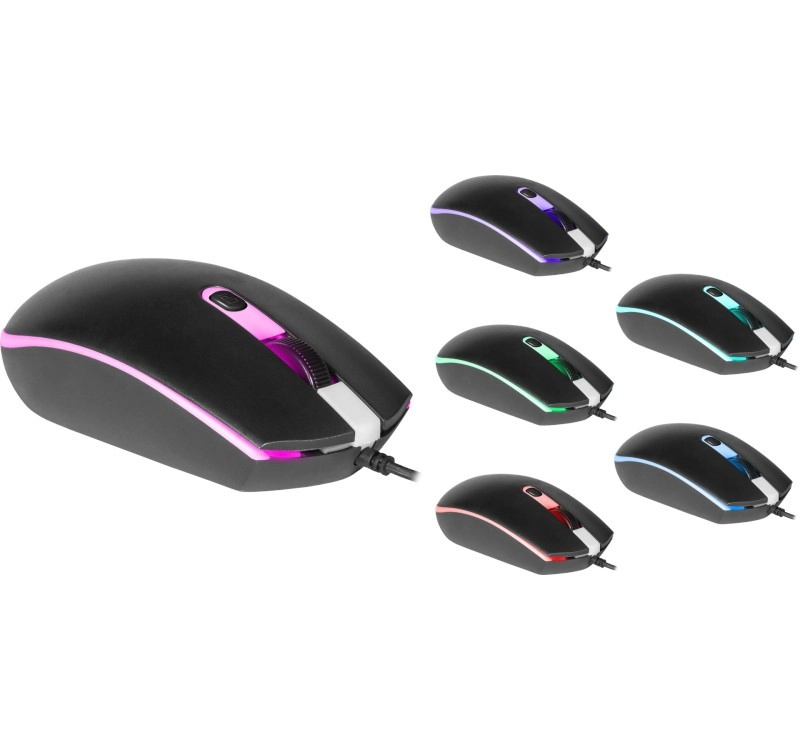 Igralna miška DEFENDER DOT ponuja natančen optični senzor z ločljivostjo 1000 DPI, atraktivno osvetlitev v 7 barvah in udobno ergonomsko obliko. Zahvaljujoč dvostranski zasnovi in rebrastemu koleščku je idealna za dolgotrajno uporabo in vsakodnevno delo. Samostojen gumb za spremembo ločljivosti omogoča hitro preklapljanje občutljivosti.