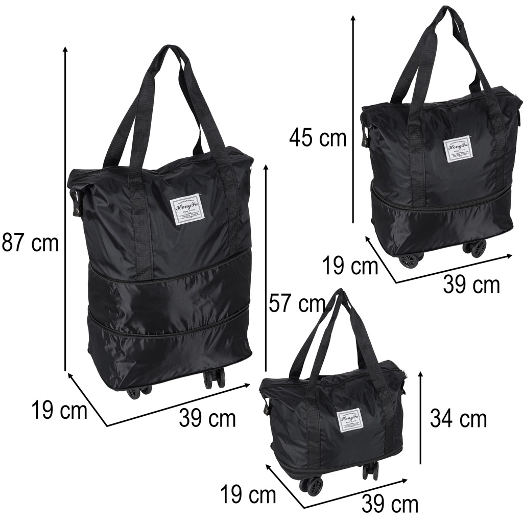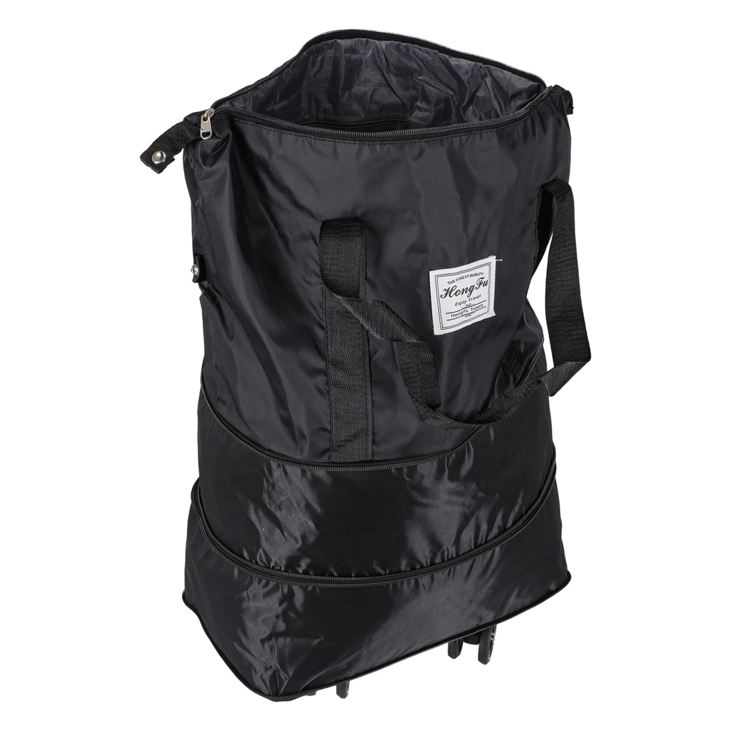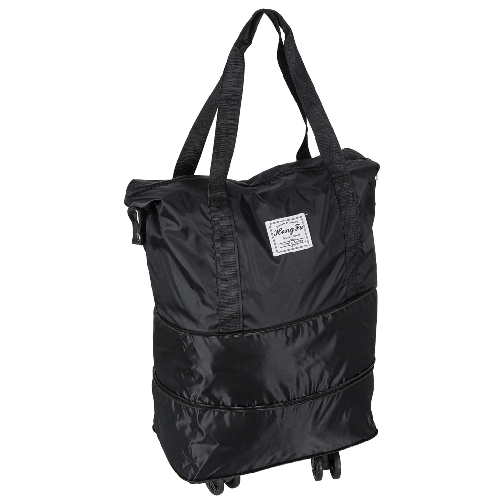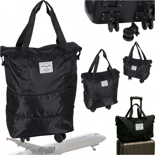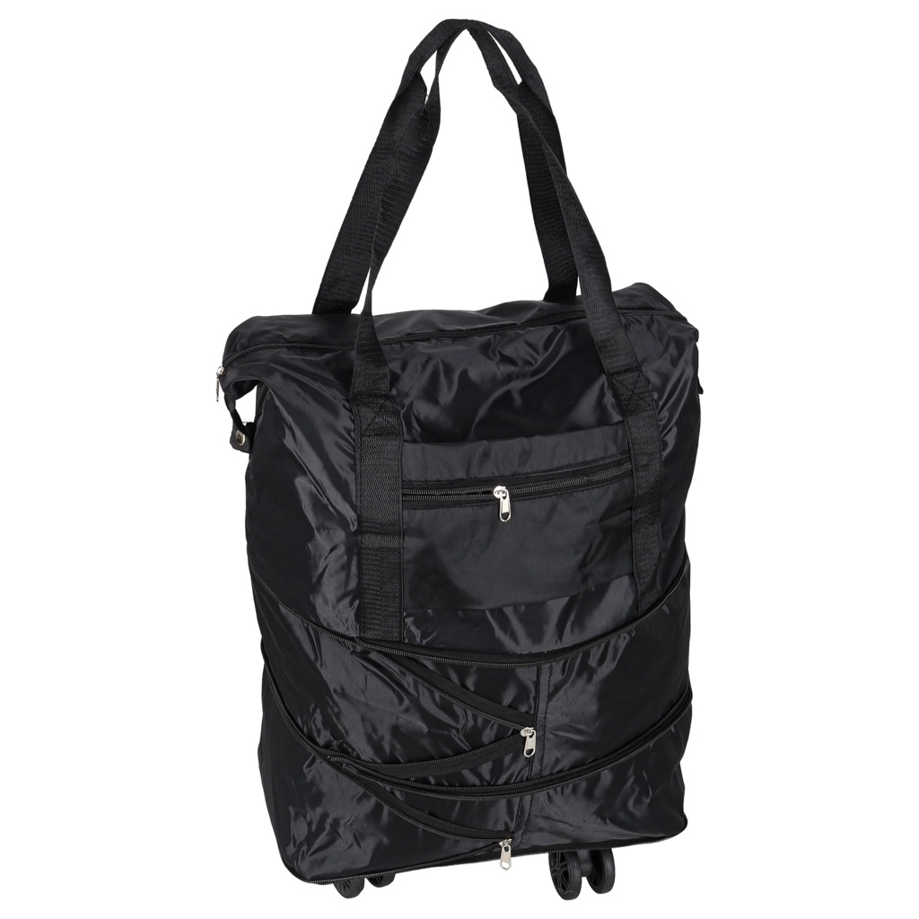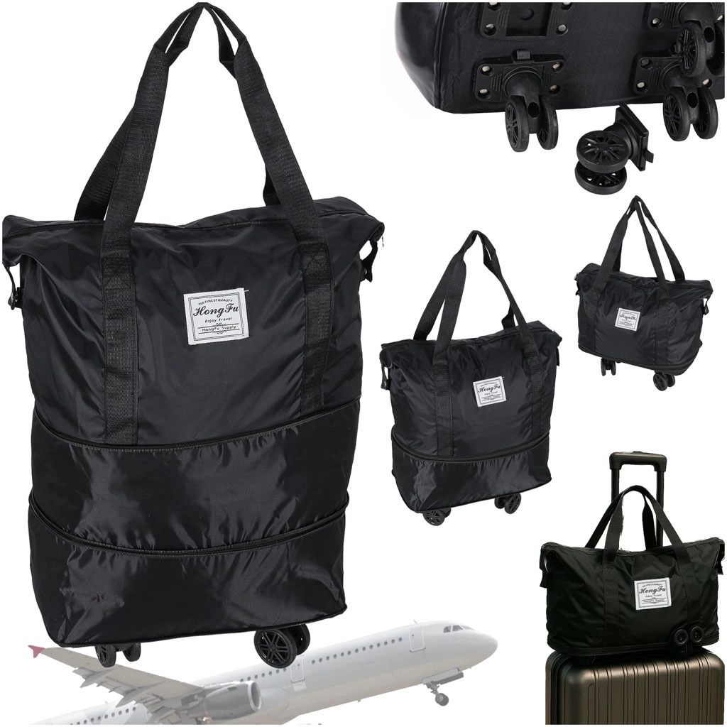 Zložljiva potovalna torba na kolescih s prostornino pribl. 50 l. Vodoodporen Oxford, 360° odstranljiva kolesca, več žepov in tri stopnje razširitve.