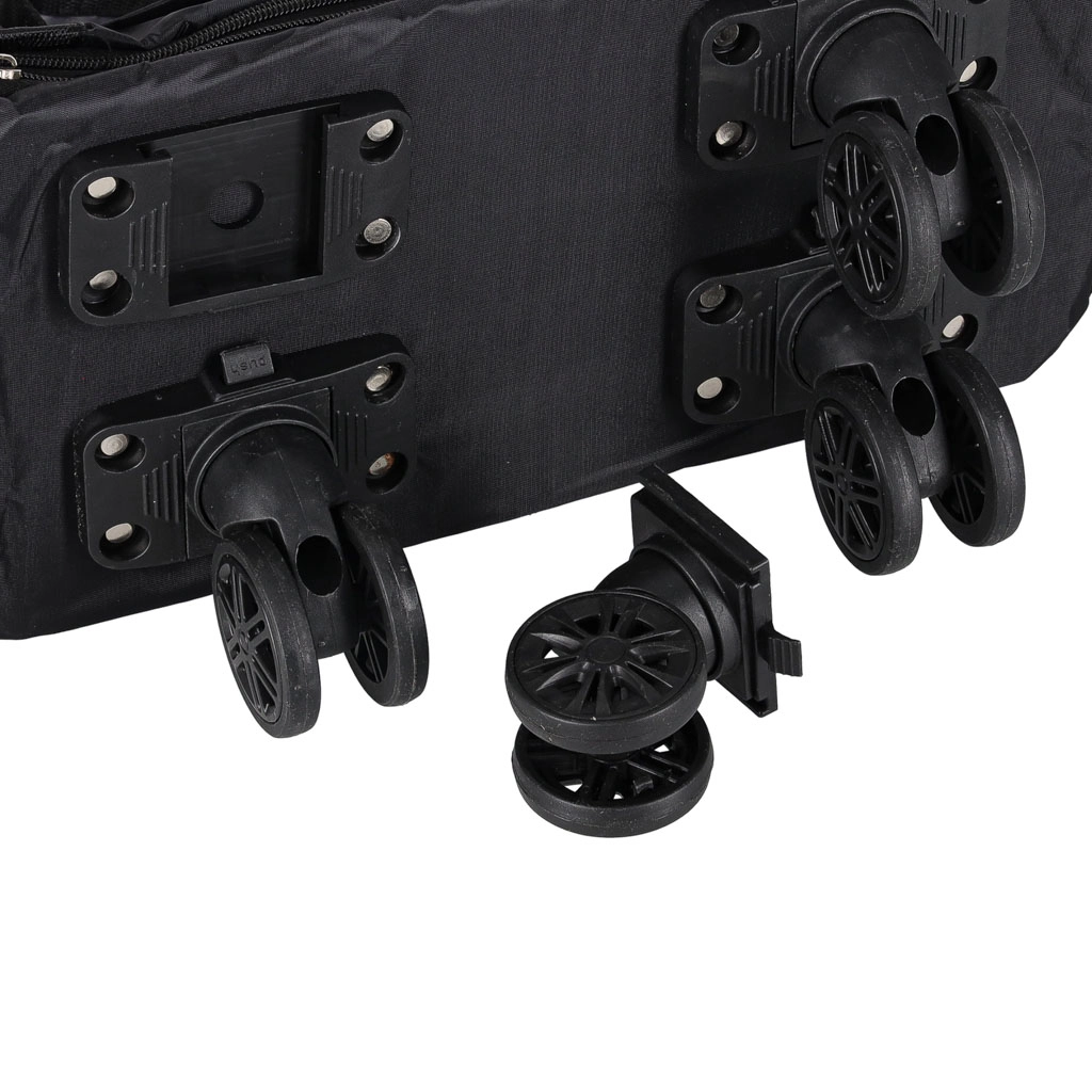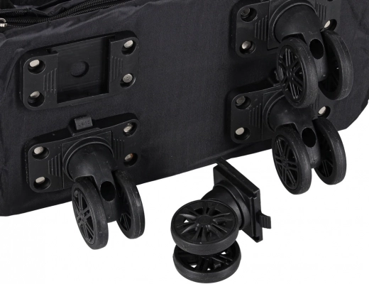 Enostavno manevriranje omogočajo 360° vrtljiva kolesca iz PVC, ki so poleg tega odstranljiva in nameščena na trdnih tirnicah. Praktični zunanji in notranji žepi poskrbijo, da so malenkosti pri roki, stranski ročaji in visoke ročice pa olajšajo prenašanje in vlečenje.