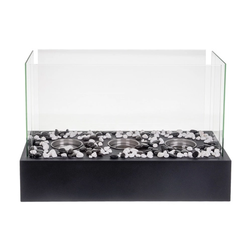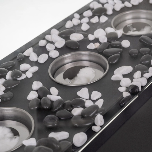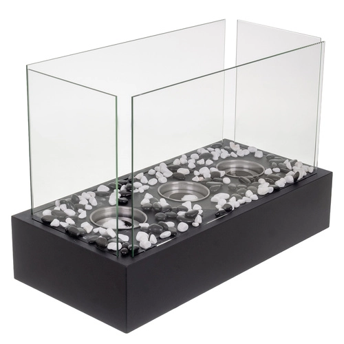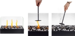 V kompletu so 3 nerjaveči gorilniki s vpojnim keramičnim vlaknom za daljše gorenje, dekorativni beli in črni kamenčki ter pripomoček za gašenje. Enostavna montaža in upravljanje ga naredita za popolno izbiro za hitro ustvarjanje vzdušja in toplote v hladnih večerih.