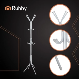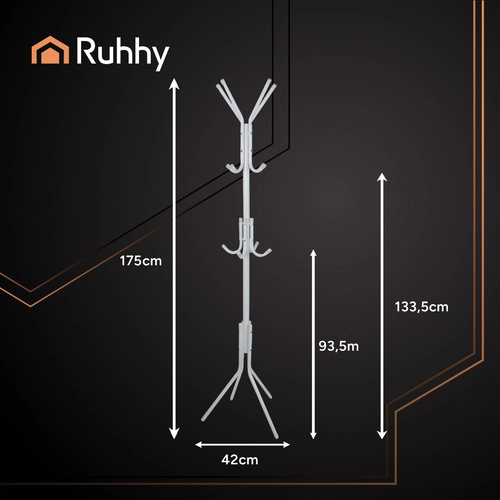 Stojalo RUHHY združuje funkcionalnost, mobilnost in čist dizajn. Zahvaljujoč trem višinskim nivojem boste zlahka odložili plašče, jakne, šale, torbe in puloverje – tudi brez zank. Zaščitne kapice na kljukah in nogah ščitijo oblačila in tla, medtem ko lahka, a trdna konstrukcija zagotavlja zanesljivo stabilnost.