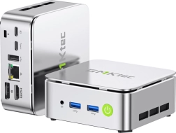 Napredno hlajenje ohranja glasnost do 35 dB, zato ne moti niti v tihih okoljih. Kompaktno ohišje prostornine 0,42 l (103 × 98 × 42 mm) prihrani prostor na mizi ali za monitorjem, napajanje preko USB‑C (19 V/3,42 A) pa je idealno za sodobne delovne postavitve.