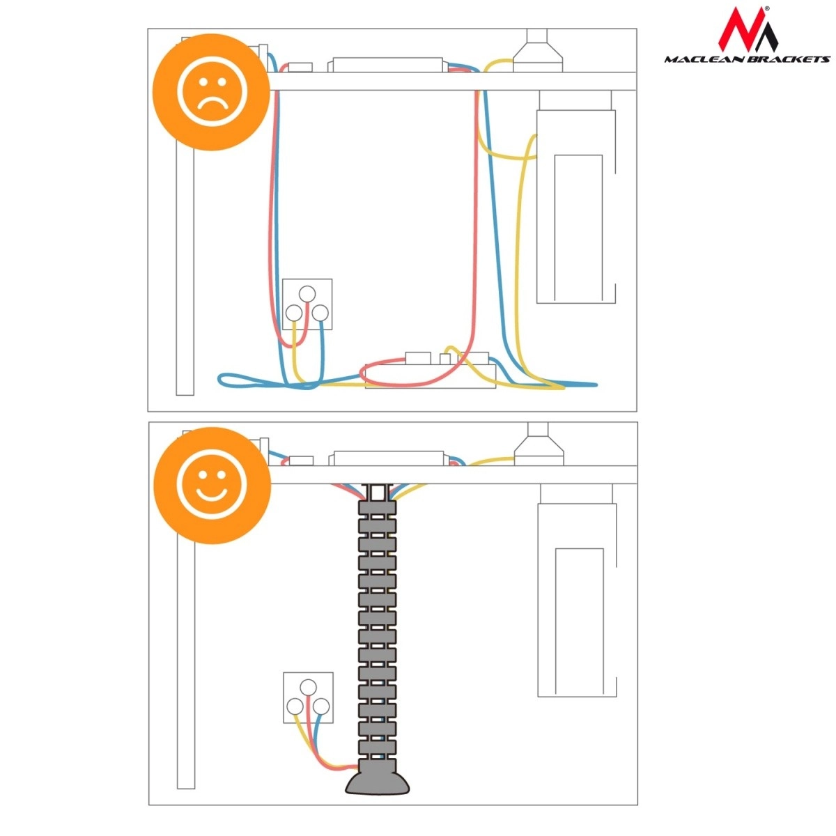 Uredite kabelsko napeljavo doma in v pisarni. Organizator kablov MACLEAN MC-768 S v srebrni izvedbi je zasnovan tako, da preprečuje zapletanje, ščiti kable pred poškodbami in ohranja vaš prostor čist in profesionalen. Odlično se poda k računalniškim sestavom, avdio sistemom in pisarniški opremi.