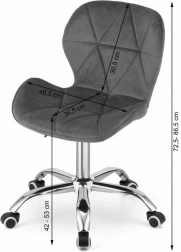 Stol AVOLA združuje brezčasen videz s funkcionalno ergonomijo. Širok, profiliran naslon in udoben sedež iz prijetnega velurja se prilagodita telesu in nudita oporo tudi pri daljšem sedenju. Gumirana kolesa so prijazna do tal ter omogočajo tih in gladek premik po prostoru.