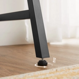 Velika plošča sprejme računalnik, monitor, zvočnike, prenosnik in tiskalnik, hkrati pa ostane prostor za knjige ali zvezke. Nastavljive nogice pomagajo izravnati neravnine tal, zato miza stoji trdno in varno.