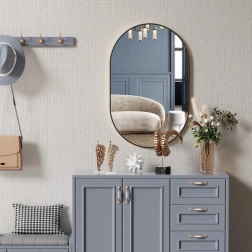 Podolgovat oval elegantno razširi in posvetli prostor. Odlično se poda nad umivalnik, v predsobo ali garderobo ter olajša ogled postave od glave do peta.