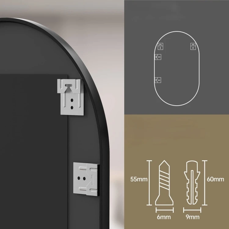 Na zadnji strani so pripravljeni čvrsti kovinski nosilci za varno pritrditev na steno. V paketu najdete tudi montažni komplet, zato ogledalo enostavno namestite brez dodatnega pribora. Kakovostno 4 mm ogledalno steklo zagotavlja čist in oster odsev.