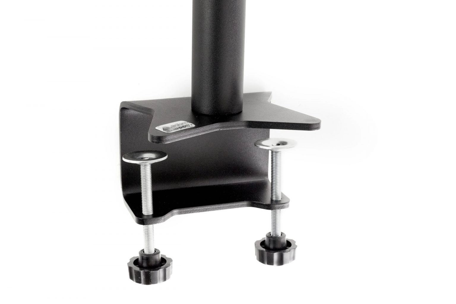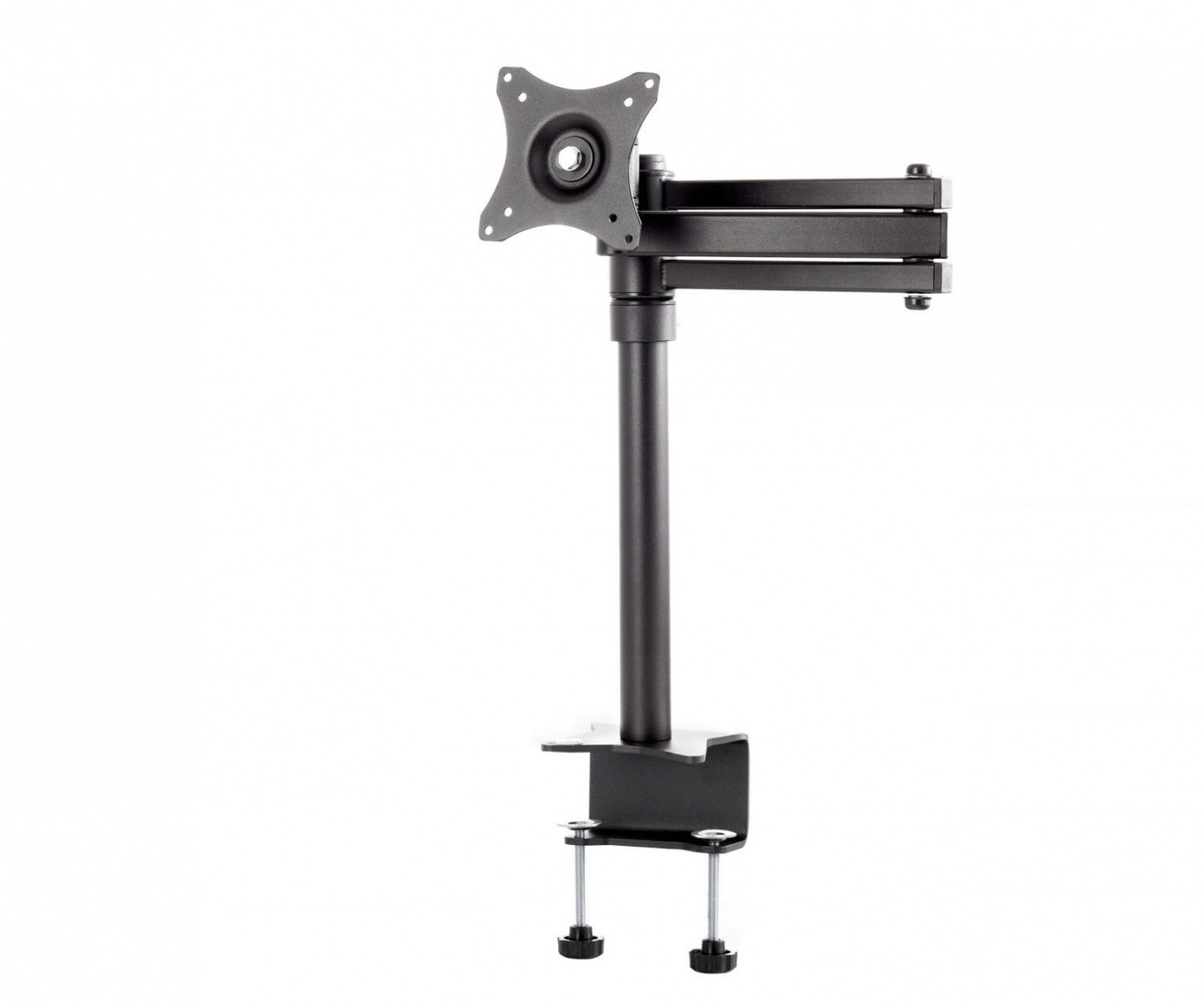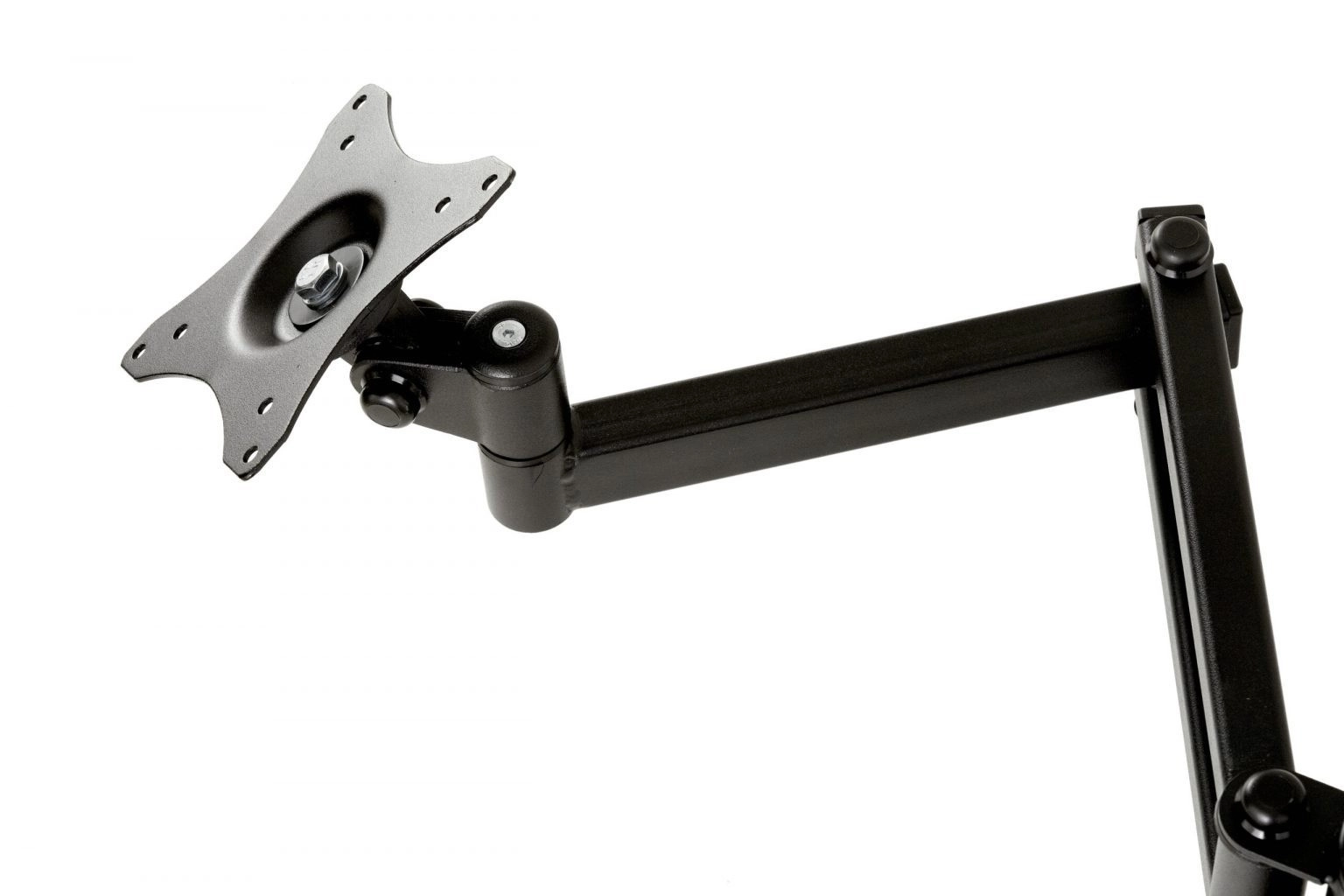 Dvojni ročaj z več spoji omogoča hitro obračanje, nagibanje in izvlečenje monitorja. Zahvaljujoč združljivosti VESA 75×75 in 100×100 je namestitev preprosta in hitra. Del kompleta je tudi upravljanje kablov, ki ohranja delovno mesto urejeno in estetsko.